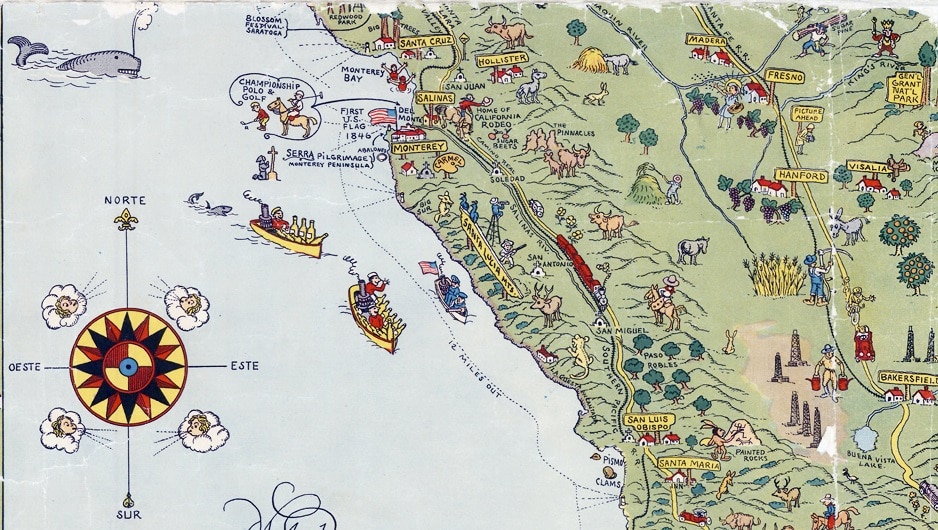 Illustrated Tourist Map of California, San Jose - 1927 Bay Area