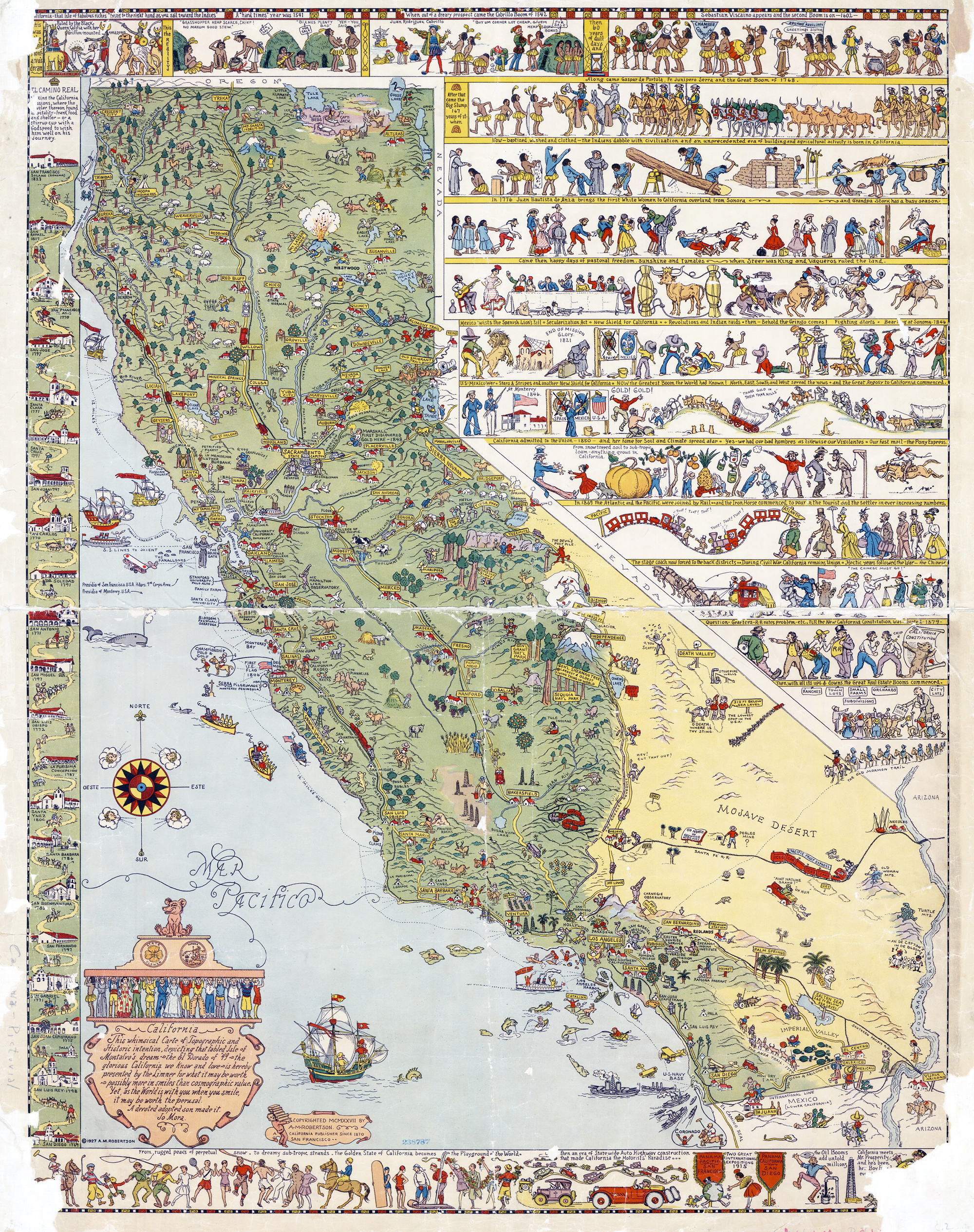 Illustrated Tourist Map of California, San Jose - 1927 Bay Area